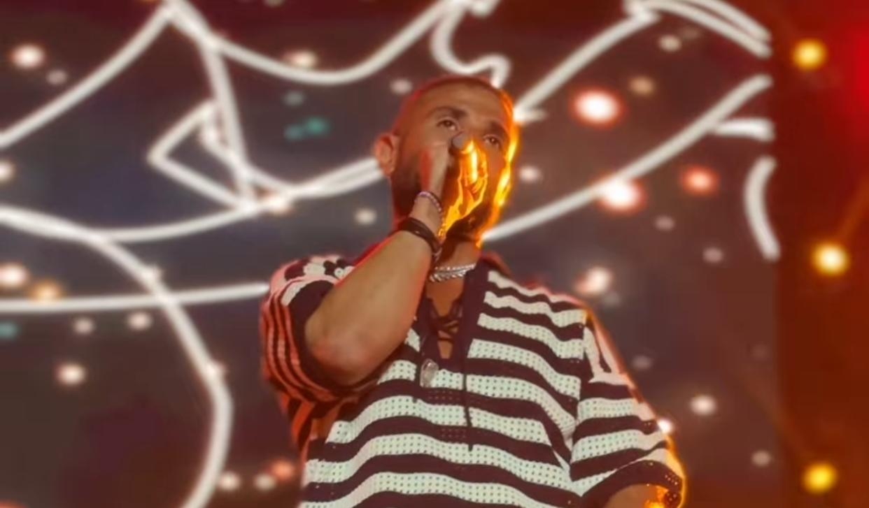 تامر عاشور على العكاز خلال حفله مع تامر حسني في الكويت