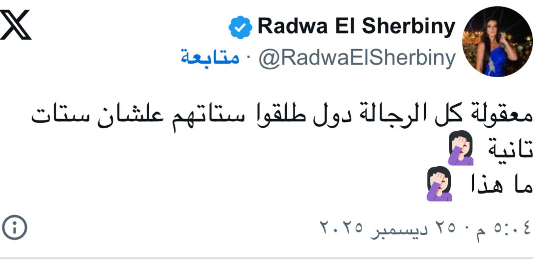 في هذا الاطار، كتبت رضوى الشربيني تدوينة عبر حسابها على اكس جاء فيه:”معقولة كل الرجالة دول طلقوا ستاتهم علشان ستات تانية؟ ما هذا؟”.