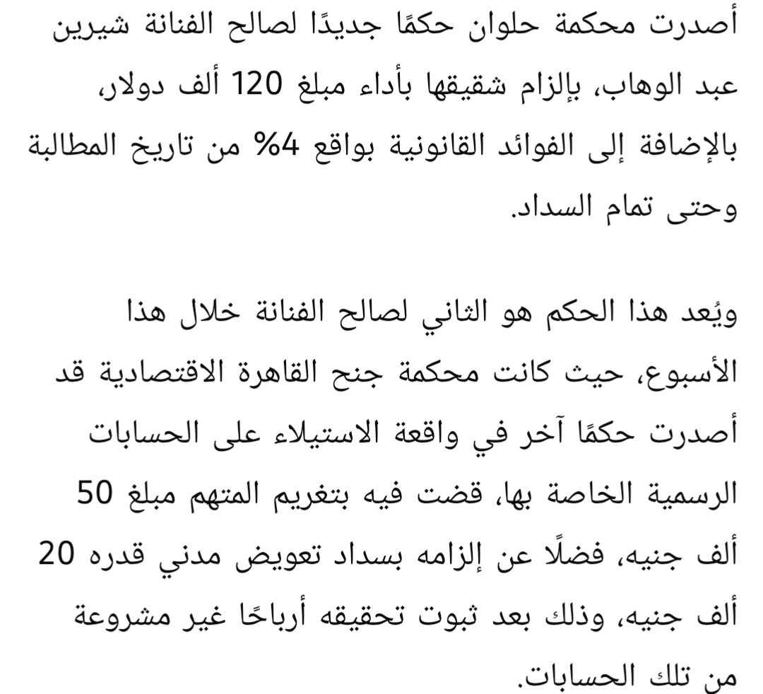 شيرين عبد الوهاب تنتصر قانونياً… حقوقها تعود بثلاثة أحكام متتالية