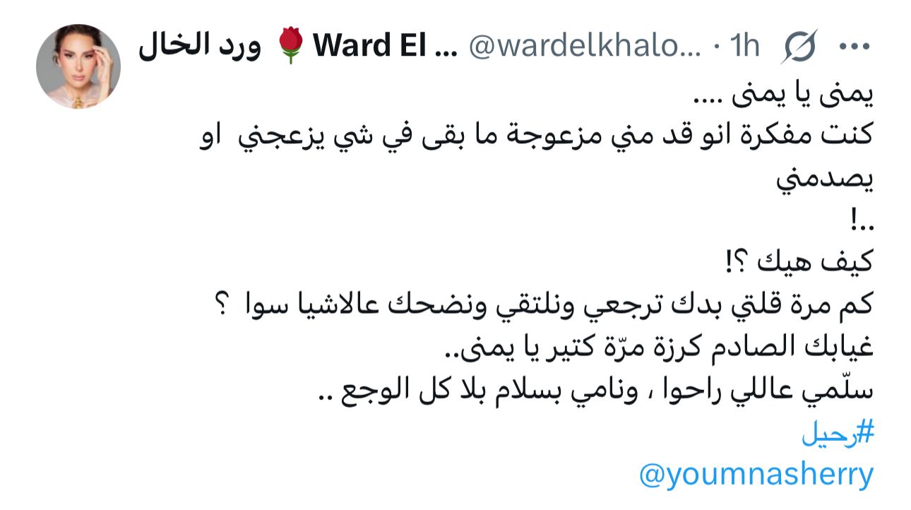 ونشرت الممثلة اللبنانية ورد الخال صورة جمعتها بالراحلة شري عبر انستغرام وكتبت:”يمنى يا يمنى ….كنت مفكرة انو قد مني مزعوجة ما بقى في شي يزعجني او